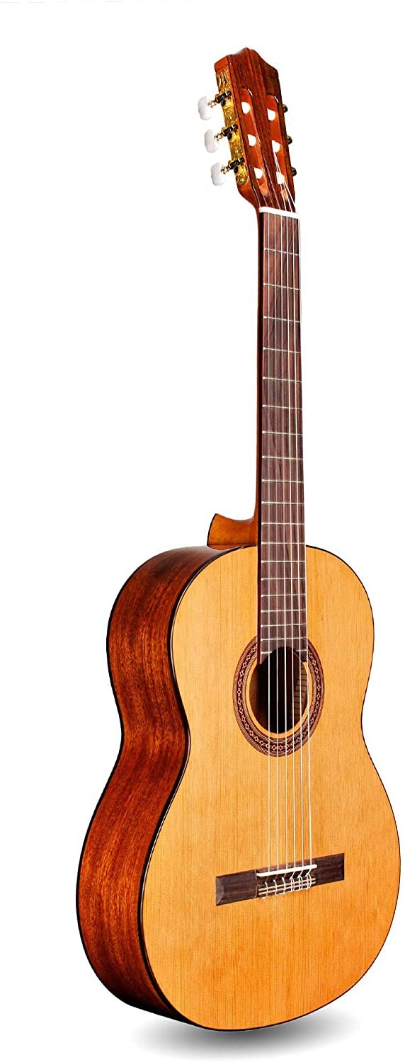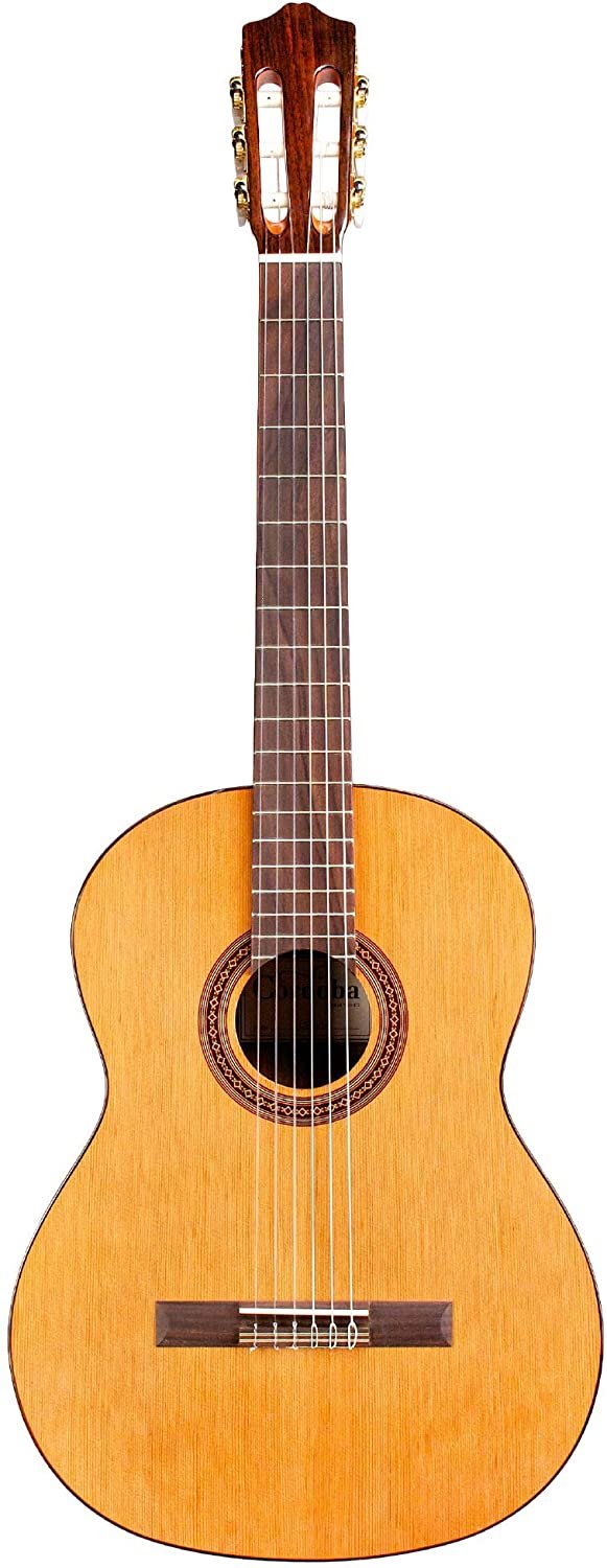 The C5 is one of Córdoba's flagship models and a top seller worldwide. Perfect as a first nylon-string guitar, this lightweight model is built with a solid Canadian cedar top and mahogany back and sides to produce a warm, well-rounded tone with beautiful sustain. Handmade in the traditional Spanish style, the C5's carved headstock, hand-inlaid wood rosette, Indian rosewood binding, Savarez strings, and glossy PU finish result in a guitar that truly stands out from all other entry-level options. A lightweight adjustable truss rod is built into the neck for stability.