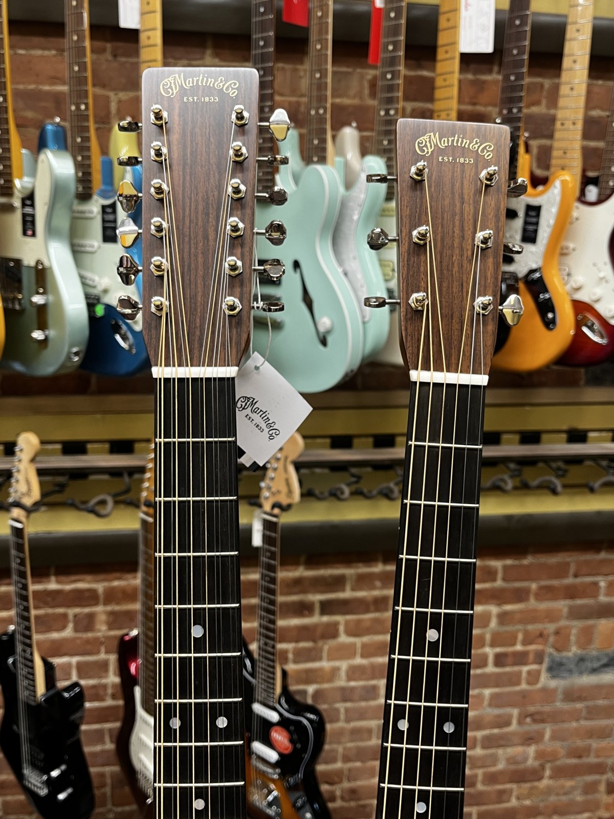 Introducing the Martin Grand J-28E DN, a pioneering double-neck acoustic-electric guitar that exemplifies Martin's dedication to exceptional craftsmanship and innovative design. This unique instrument features both six-string and twelve-string necks, providing musicians with unparalleled versatility to explore diverse sounds and musical textures.?