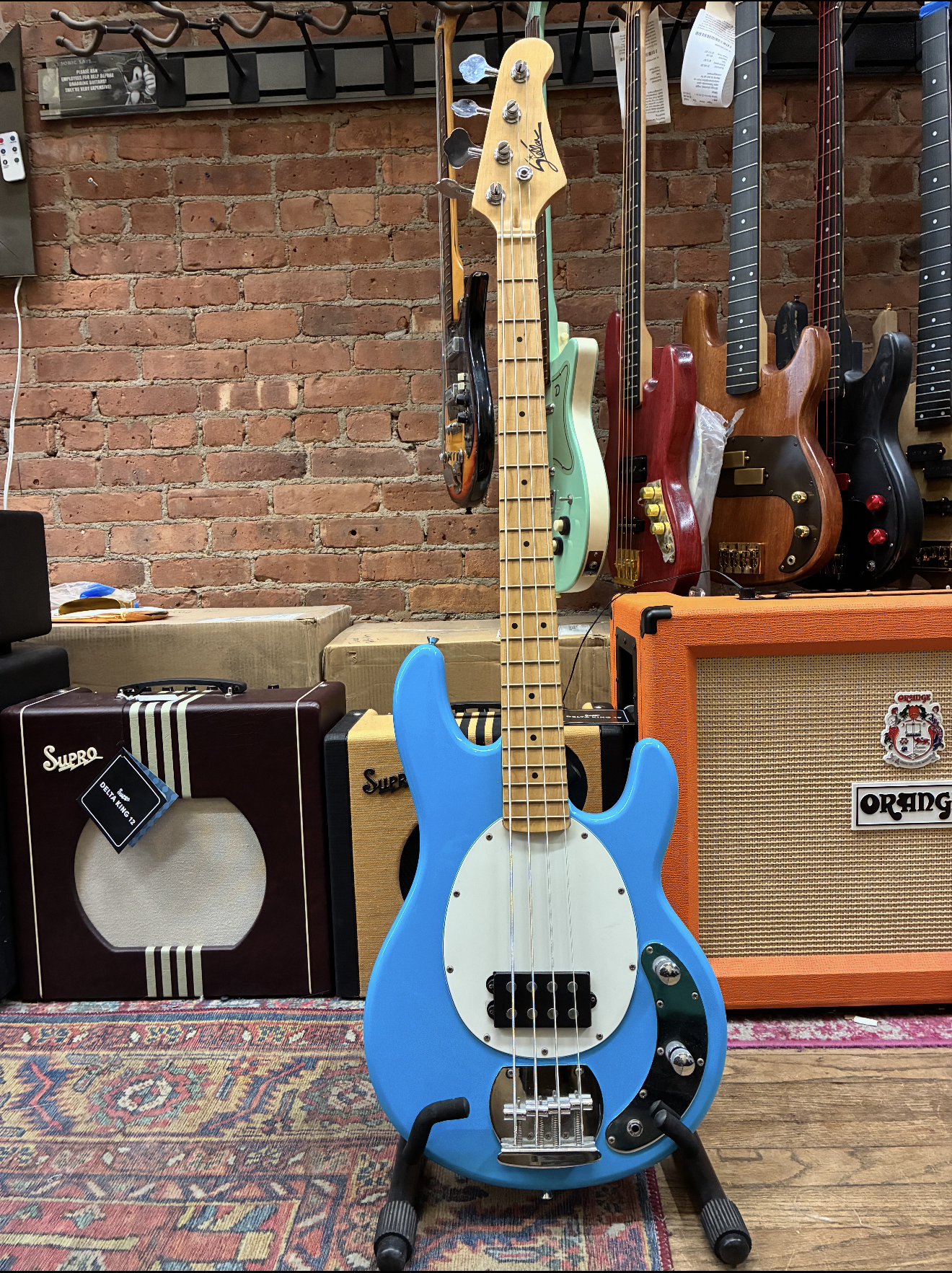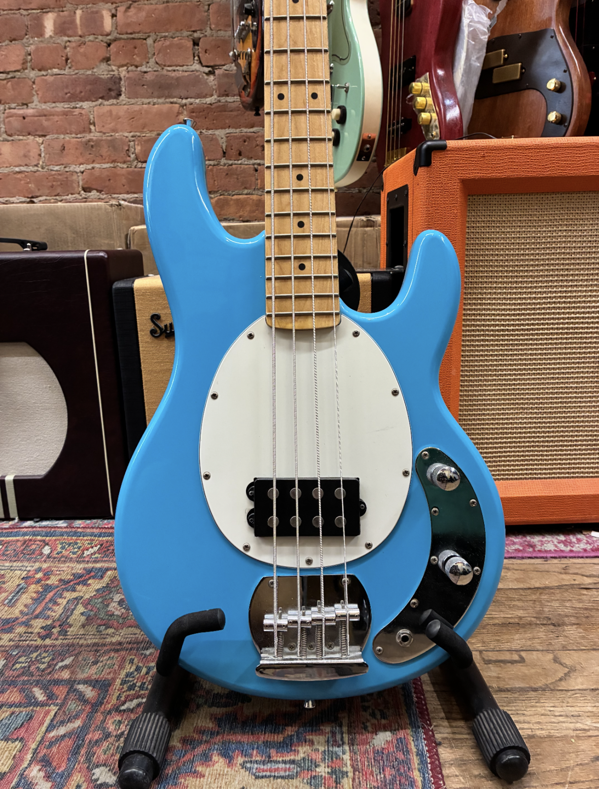 Looking for a killer bass that won’t break the bank? This used Stella Stingray-style bass is ready to rock in a stunning powder blue finish that turns heads on stage or in the jam room. Featuring a single powerful humbucker pickup, this bass delivers punchy, growling tones inspired by the classic Music Man Sterling Stingray – at a fraction of the price.