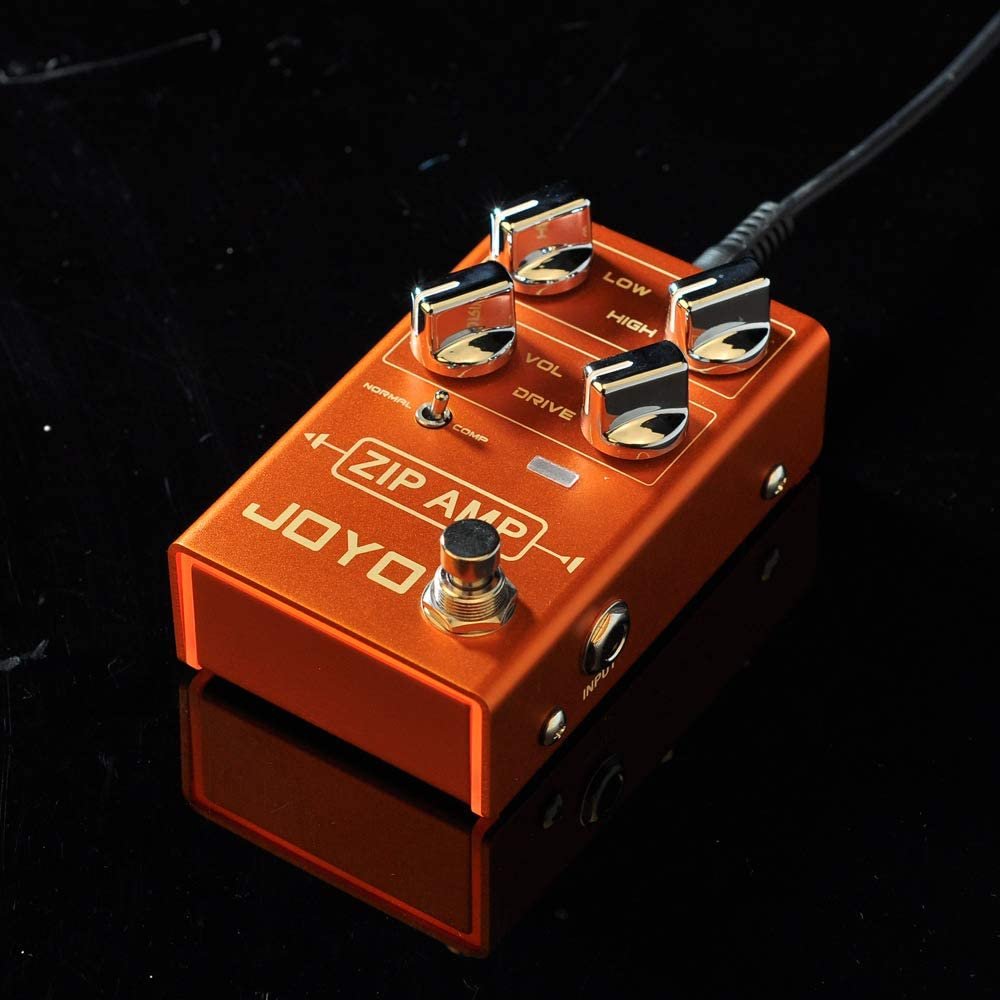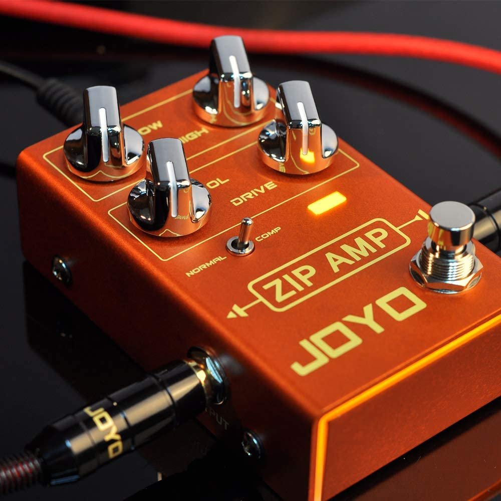 R-04 ZIP AMP overdrive pedal delivers strong compression overdrive tone, also with great Gain, you can adjust the compression by the COMP toggle switch.