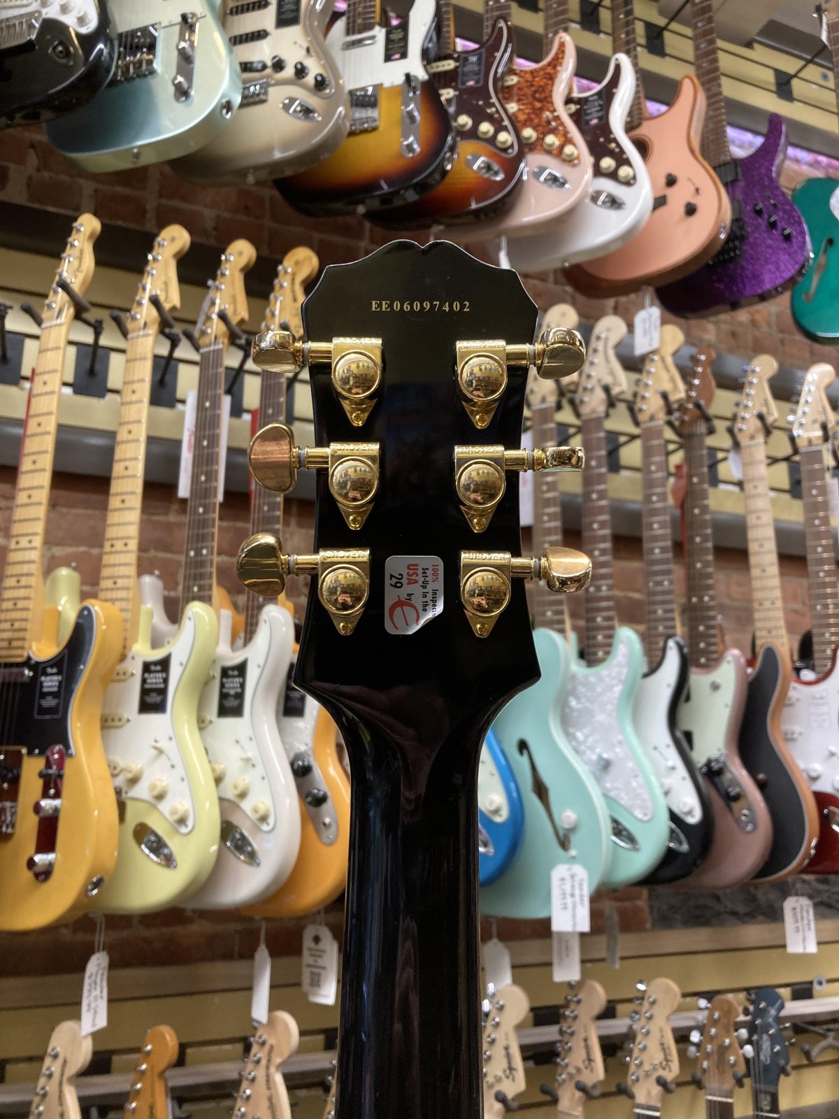 With its gloss ebony finish, multi-ply binding, and ornate gold hardware, the Black Beauty stands out on any stage. But it's not just about looks—this Custom model features a mahogany body and set neck, ensuring warm, resonant tone and long, singing sustain.